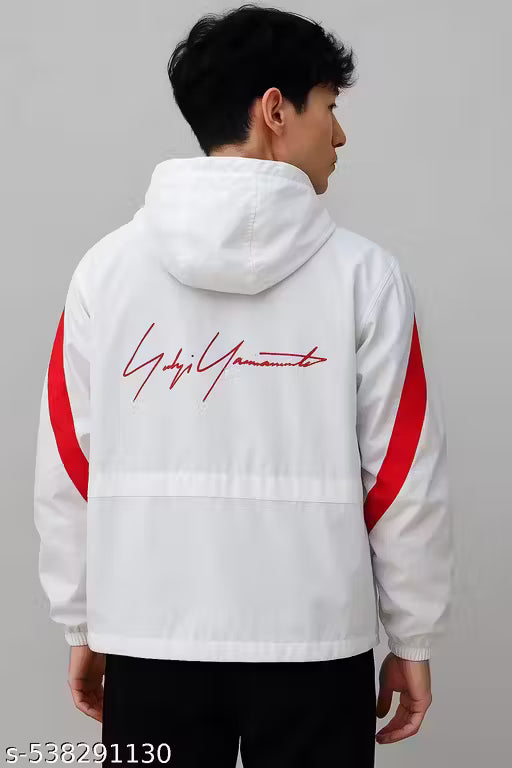 Men’s White & Red Stripe Casual Sports Jacket with Hood