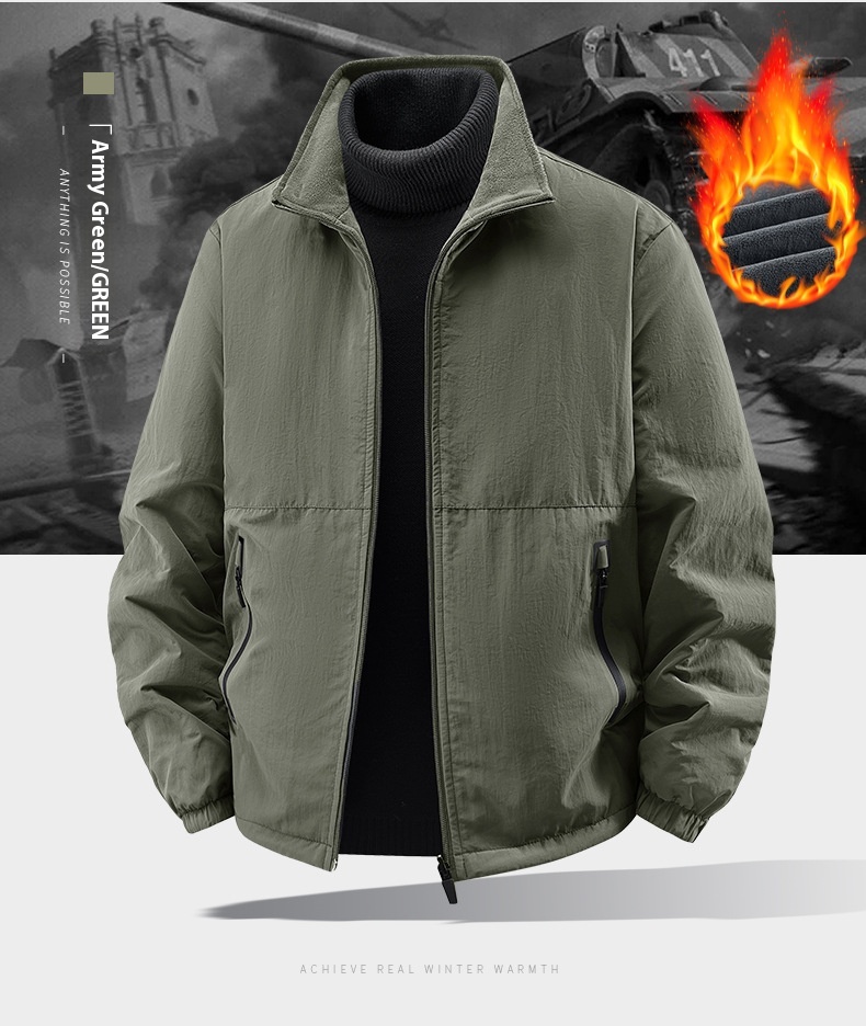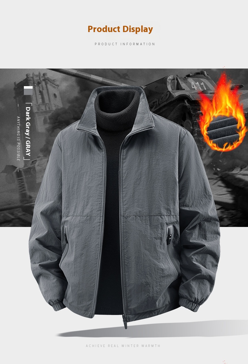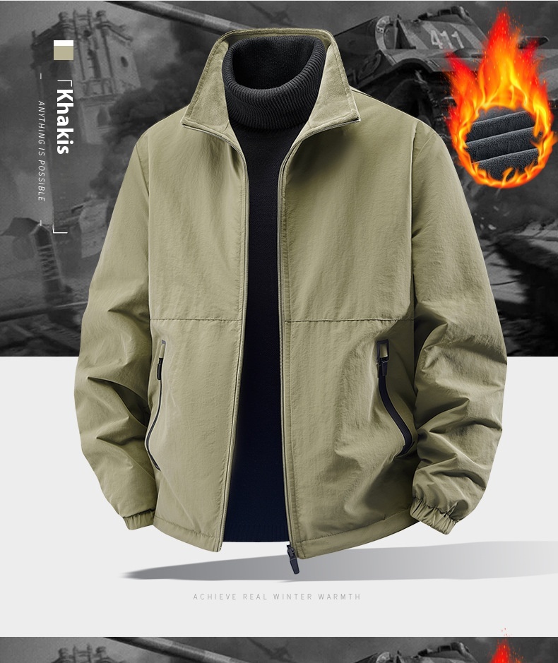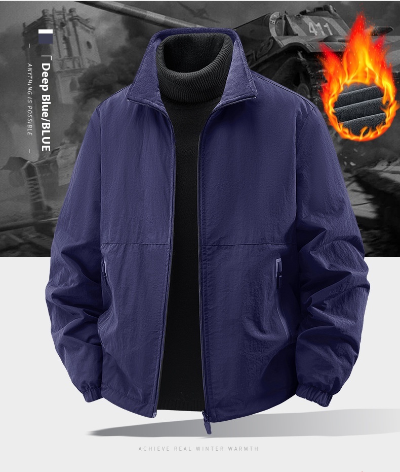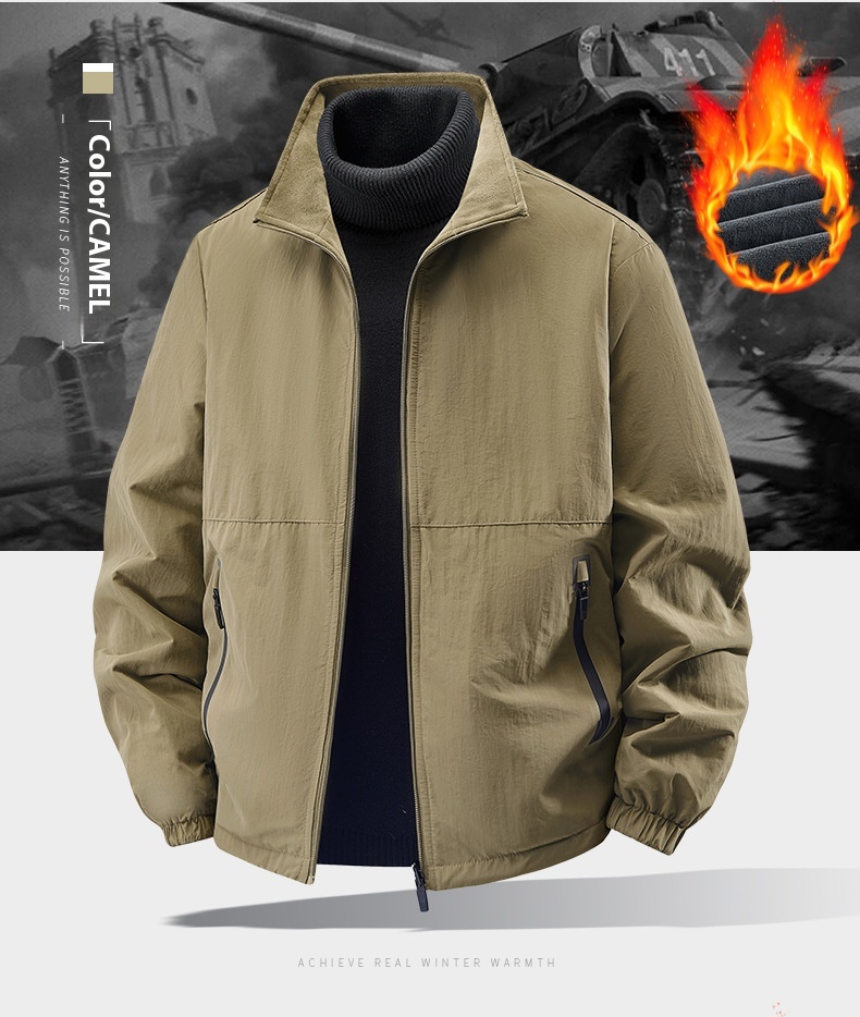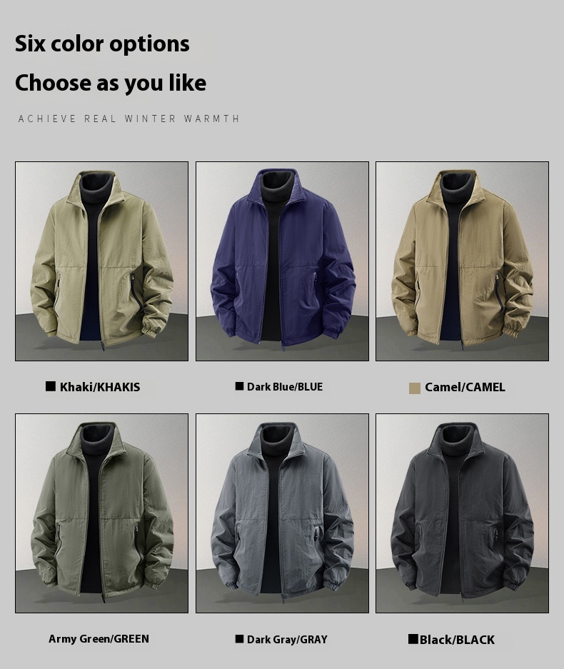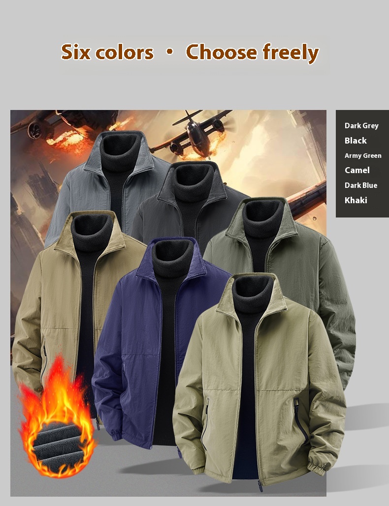 Fleece-lined Casual Jacket Coat Young And Middle-aged Stand Collar Loose Top