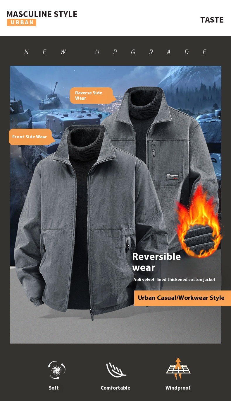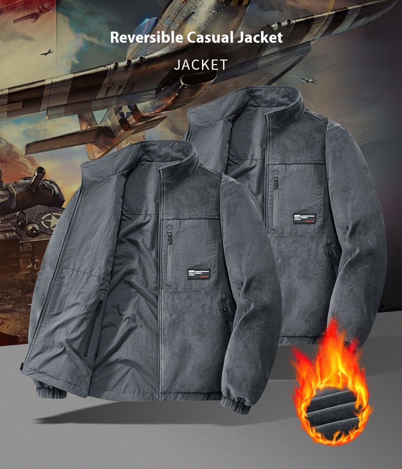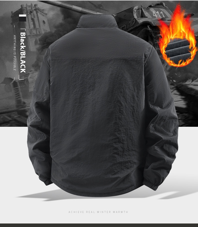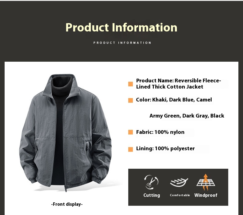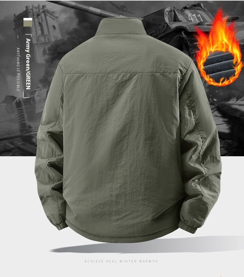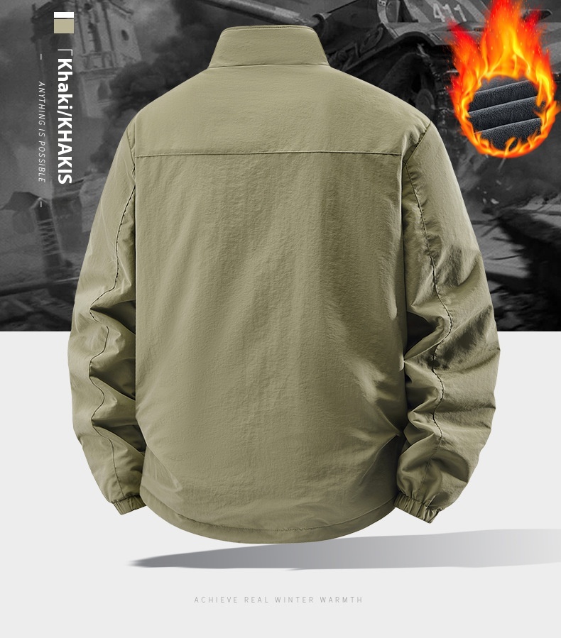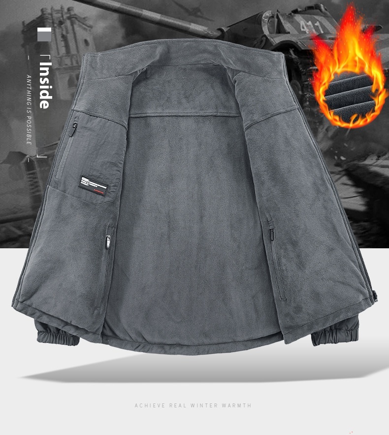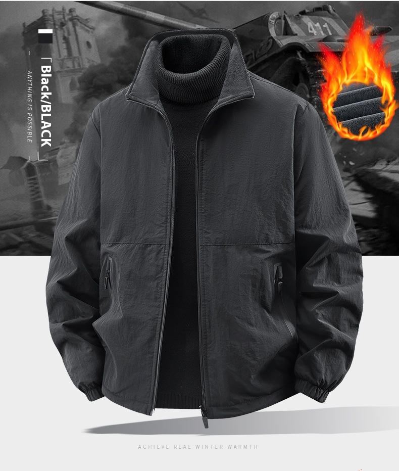 Fleece-lined Casual Jacket Coat Young And Middle-aged Stand Collar Loose Top