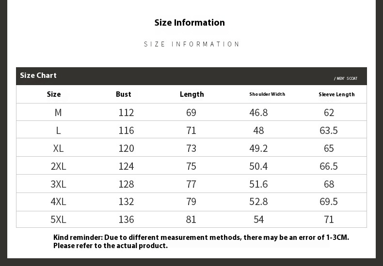 Color: khaki, dark blue, camel, army green, dark gray, black