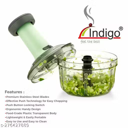 Name : Indigo 650ml Chopper Manual Chopper Large Quick & Powerful Hand Held Food Chopper to Chop & Cut Fruits, Vegetables, Herbs, Onions for Salsa, Salad, Pesto, Hummus, Guacamole (Premium) | 3 Stainless Steel Blades